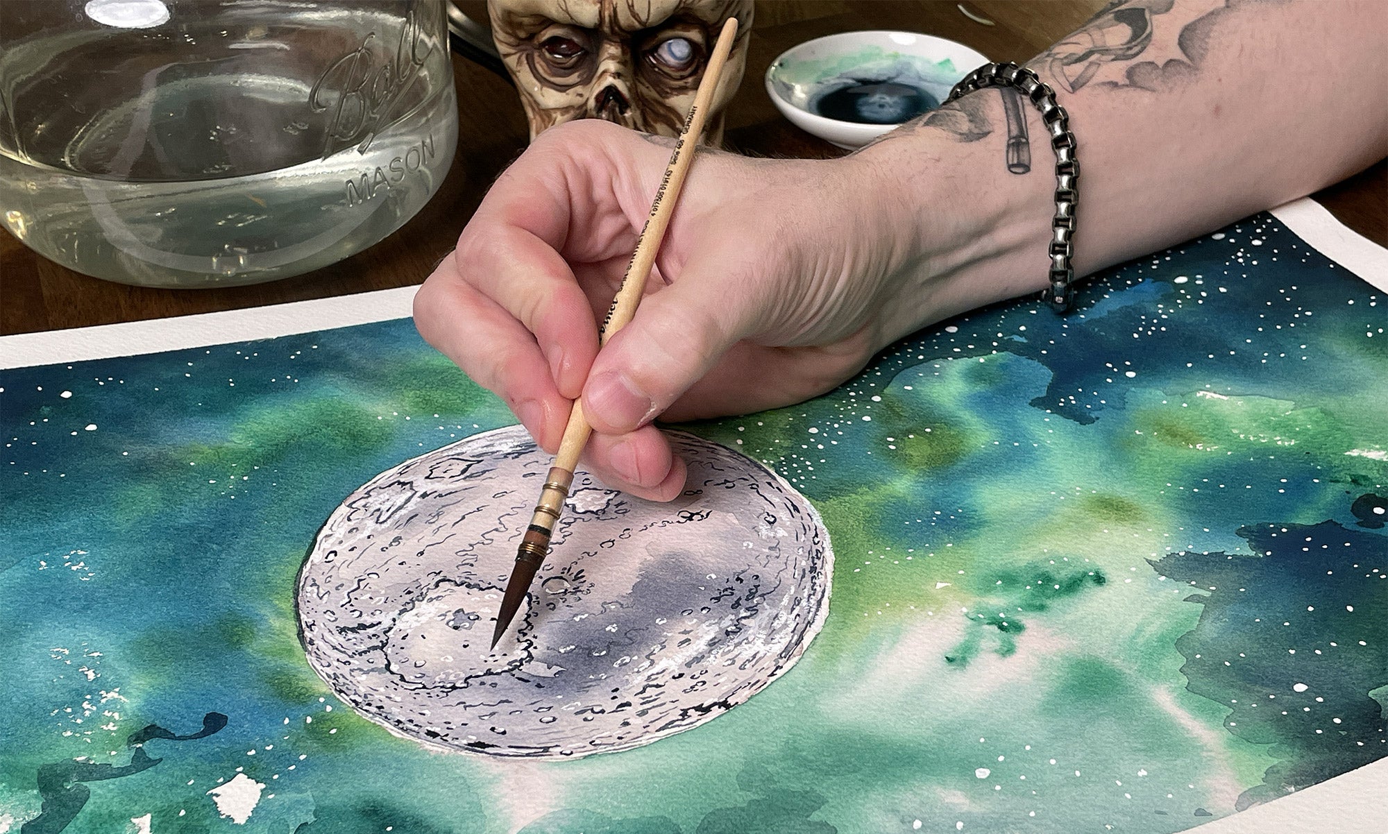 Artist Dan Marek has created every piece of artwork by hand, with no AI tools at any step in the process.